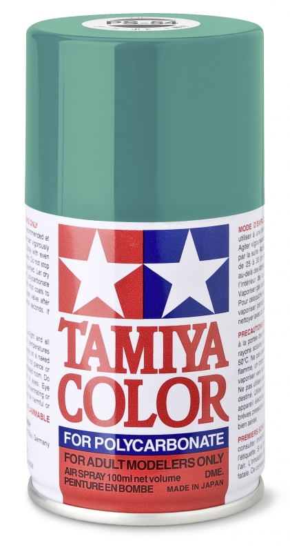TAMIYA PS = Polycarbonat "Lexan" Sprayfarben sind speziell entwickelt, um unlackierte Bausatzkarosserien zu lackieren. Zahlreiche Farbtöne stehen zur Auswahl und erlauben die individuelle Gestaltung von Modellen. Jede Dose enthält 100 ml Farbe, die Öl- und Kraftstoffresistent sind, dies erlaubt den Einsatz auch an Nitro-Modellen.