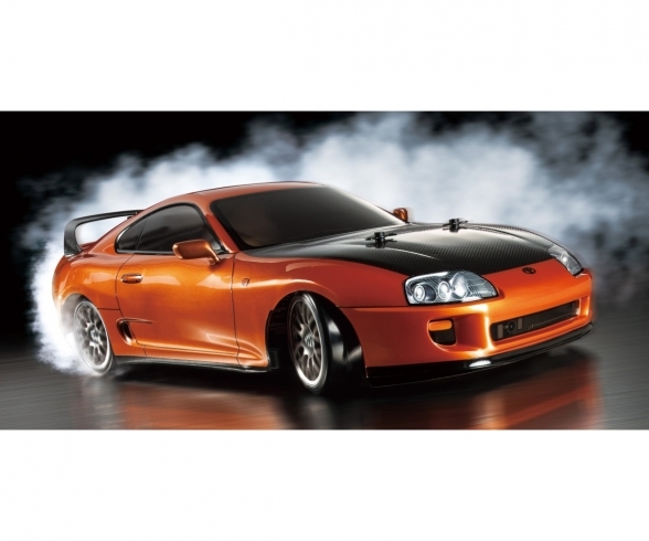 Der Toyota Supra ist in Japan einer der beliebtesten Sportwagen. Er bewährte sich auf den Rennstrecken und auf der Straße. Nun präsentiert TAMIYA den Supra als Drift Modell auf Basis des TT-02D Chassis. Die Karosserie stammt vom Toyota Supra 58392 Bausatz.